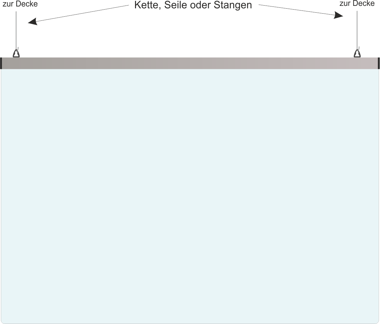 Klare, durchsichtige Platte mit Alu-Klappleiste zum Abhängen von der Decke.
